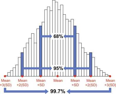 - 99.7% probability of the variable lying within 3 standard deviations of the mean