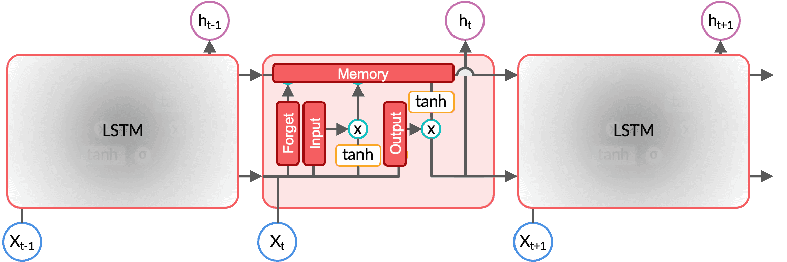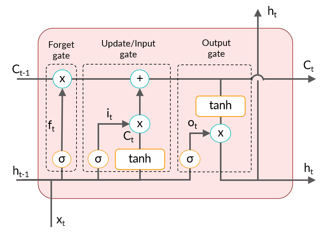 The cell state, retains pieces of information even when the sequences get really long, thereby working as long-term memory, $c_t$ . In contrast, LSTM cells have a hidden state acting as short-term memory, $h_t$ to capture the most recent information. This is the reason why LSTM is called long short-term memory.