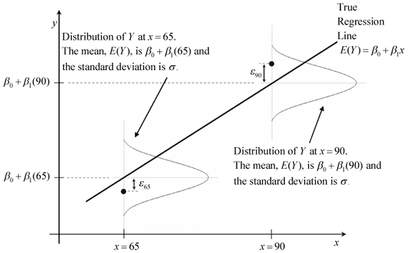 • Predicting the value of y for new value of x: $\hat{y} = \hat{\beta_{0}} + \hat{\beta_{1}}x;where;\hat{;} \implies estimate$