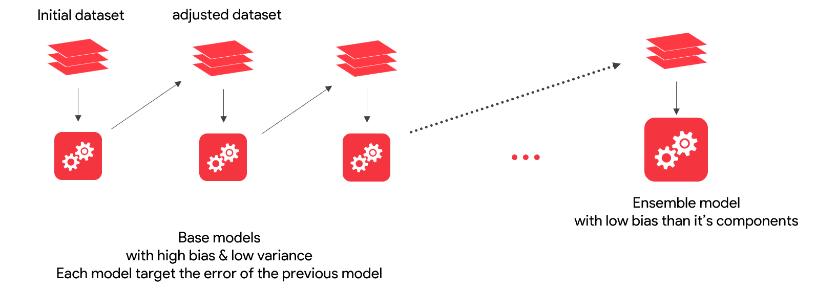 - The model will iteratively continue the steps mentioned above for a pre-specified number of weak learners.